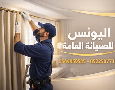 نحن في اليونس للصيانة العامة نوفر خدمات تركيب جميع أنواع الستائر بدقة عالية للحصول على أفضل شكل جمالي لمنزلك أو مكتبك.